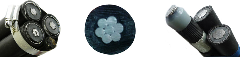 - Assembly: Three XLPE insulated screened cores are bundled around the galvanized steel wires in a right hand