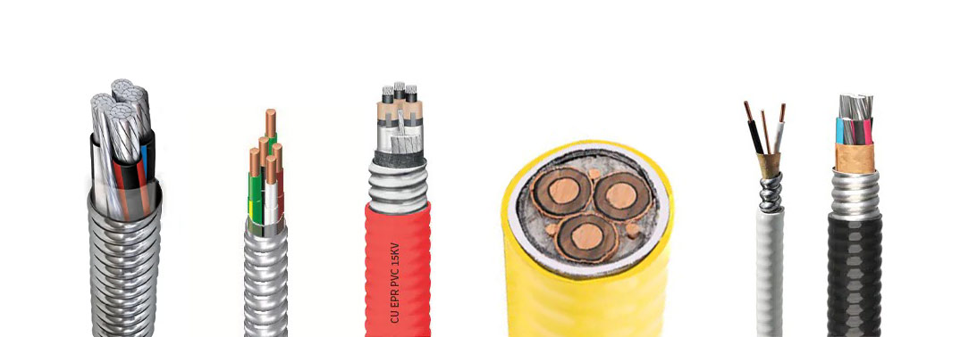 Type MV-105 or 15kv MC-HL, for cable trays – Resistant to sunlight – For direct burial